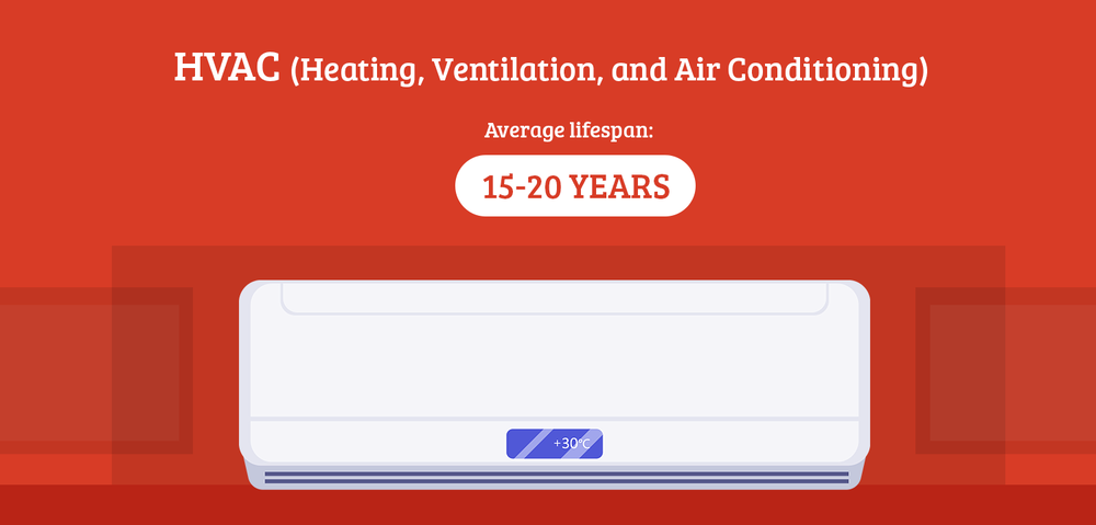 One of the largest systems in your home, and one of the most important for your comfort all year round, is your heating and cooling system. If you have a typical HVAC system, your air conditioner and furnace will both last an average of 15 to 20 years. Most thermostats generally last about a decade, but can last longer depending on the make, model, and type.