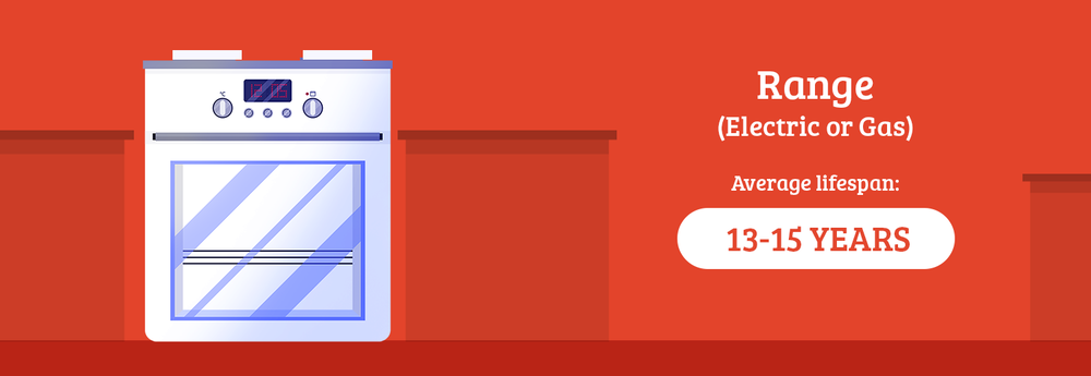 Ranges, whether gas or electric, are generally one of the more durable appliances in your kitchen, which is why these can last somewhere around 13 to 15 years. It's often the body or the electric control unit that goes bad before the cooking units. Or the style becomes dated, triggering the desire for a new appliance.